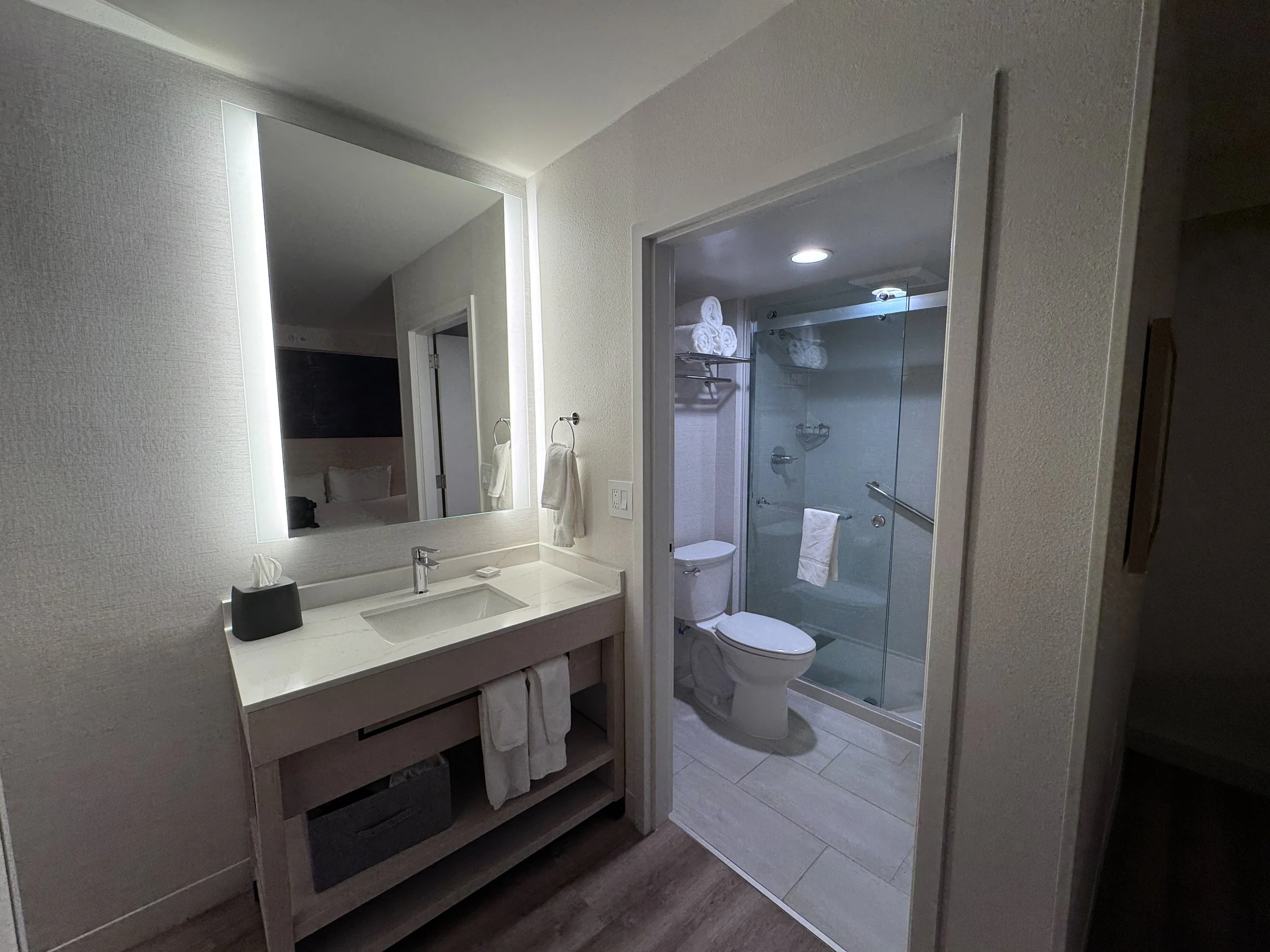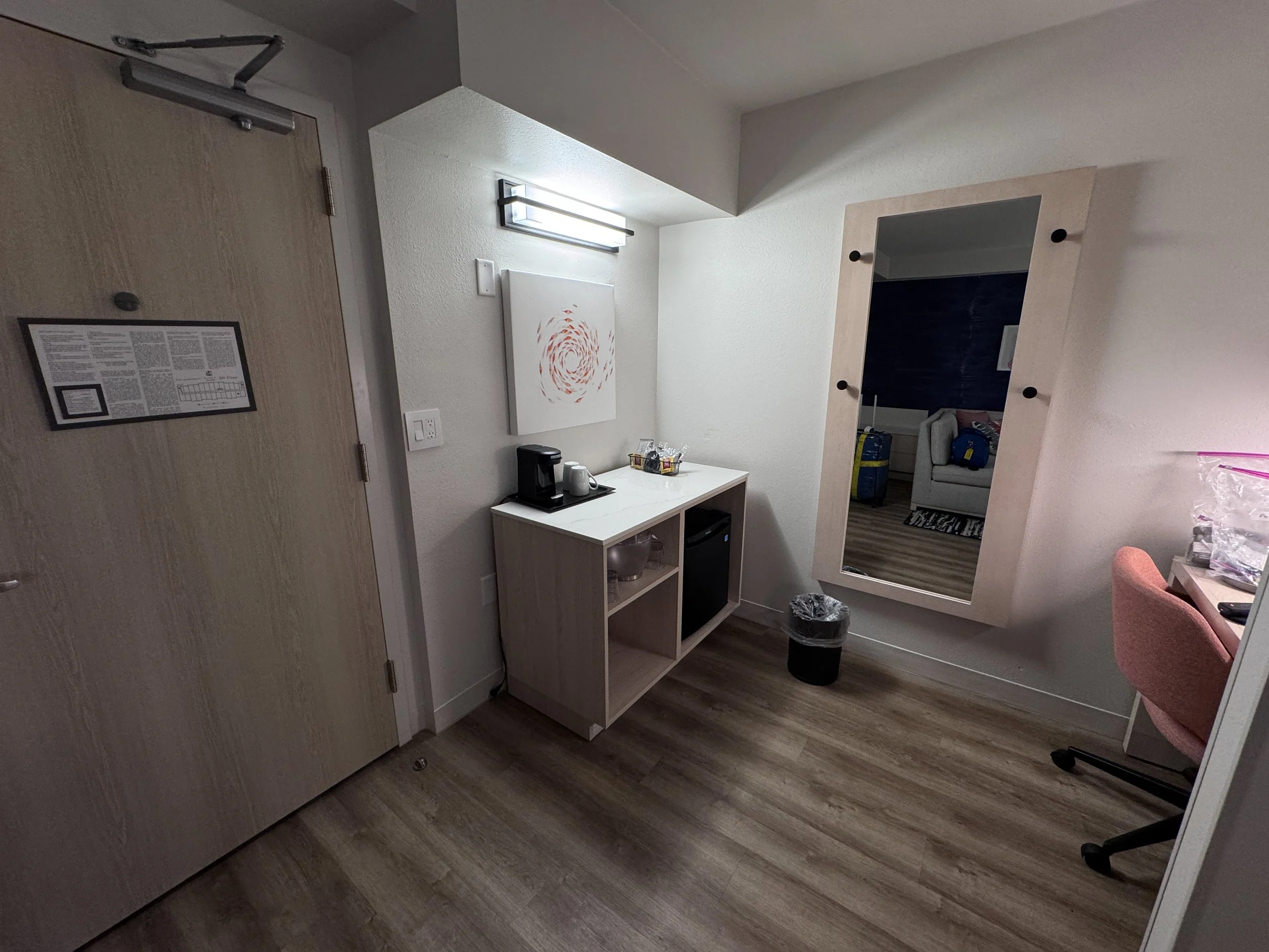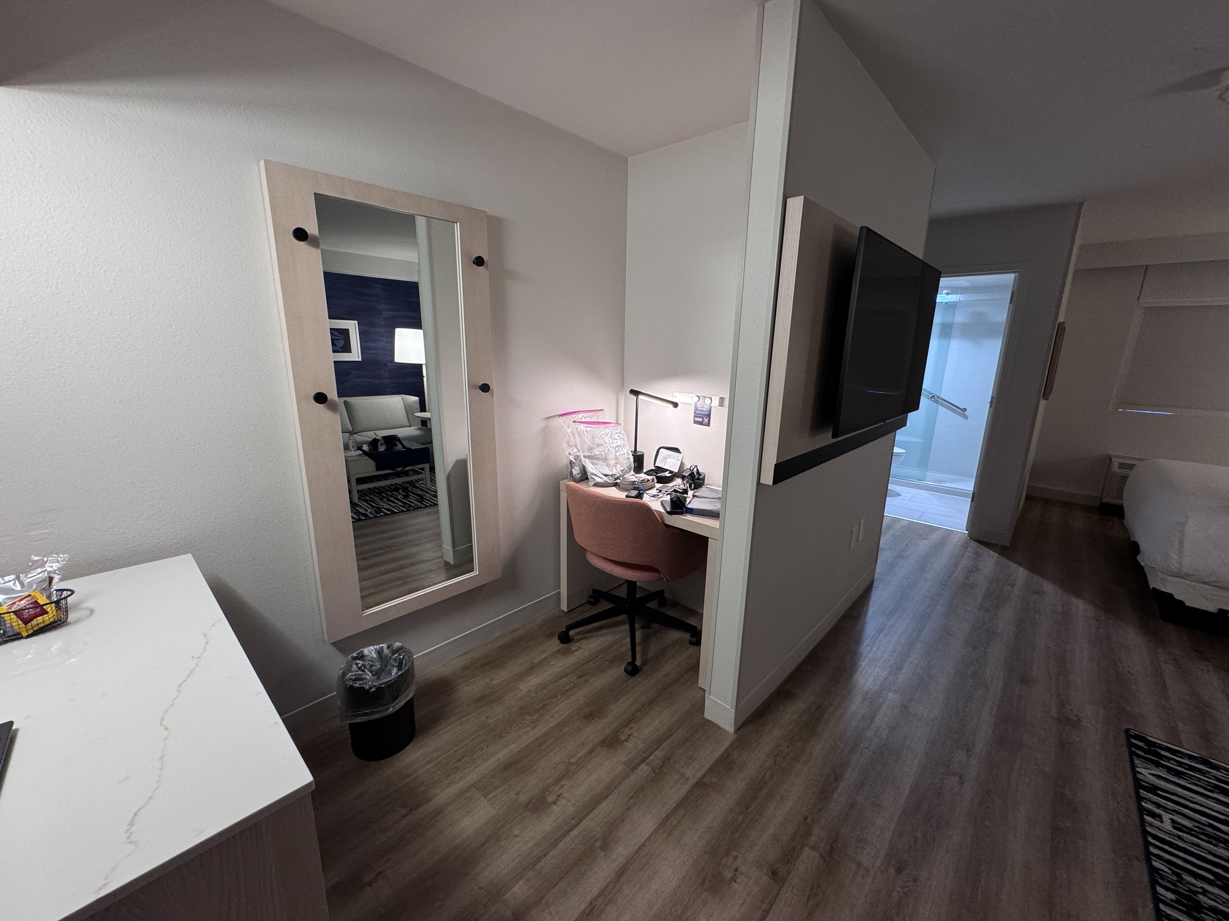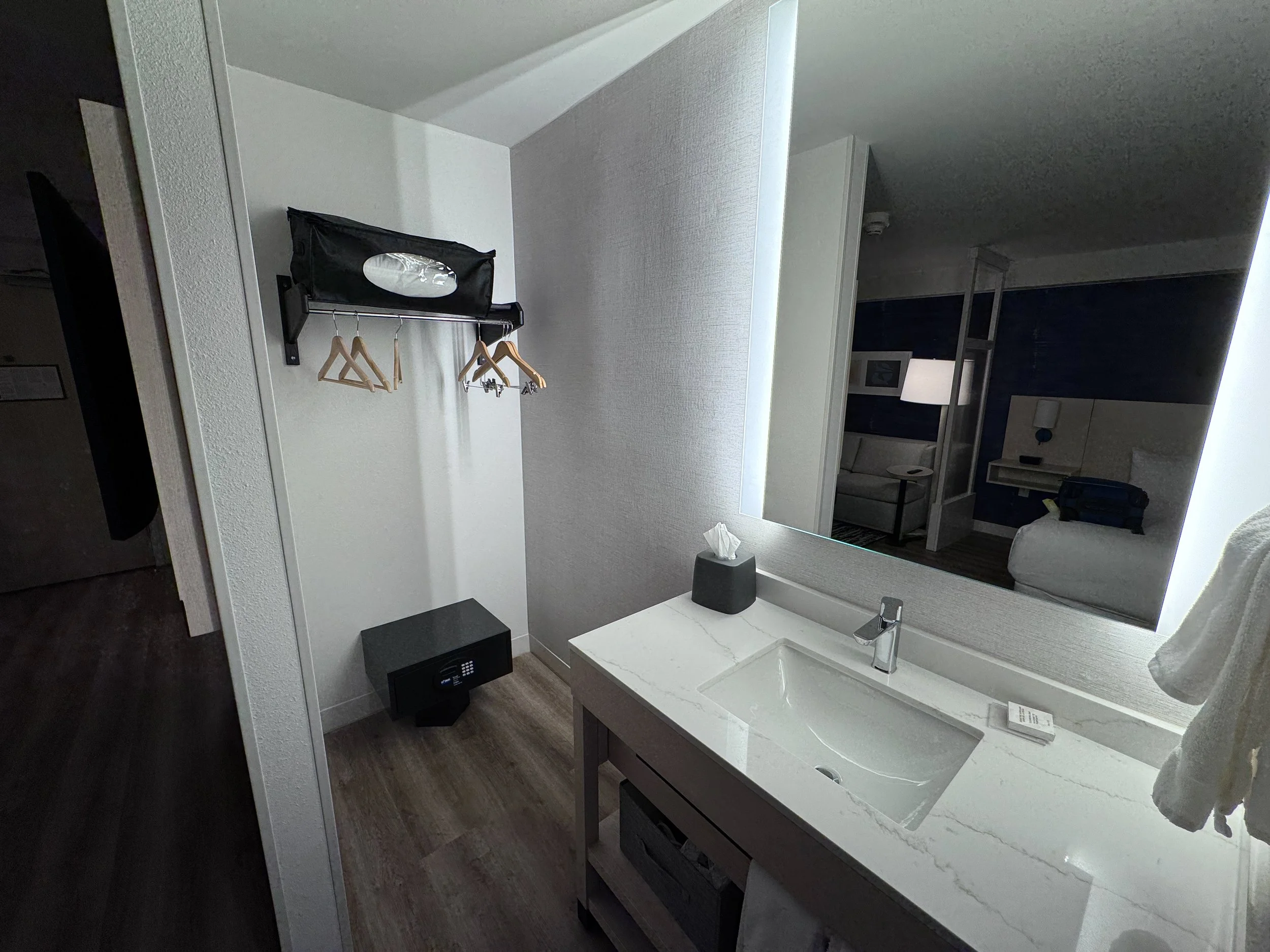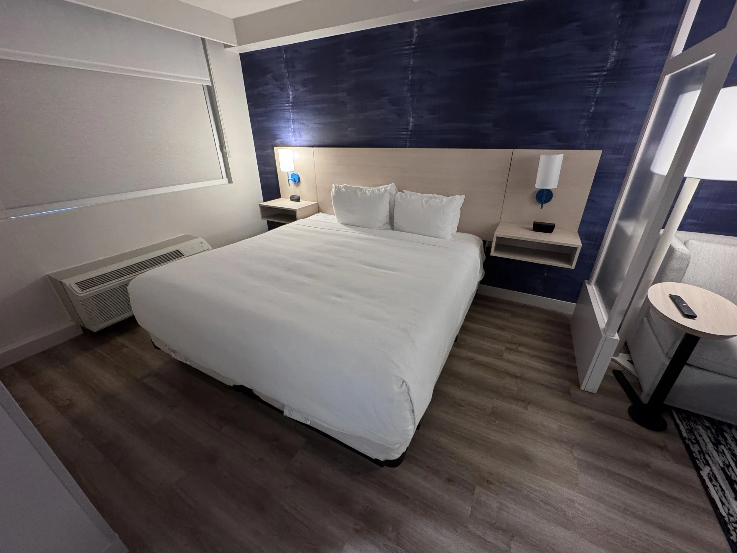 If you have stayed at other Hyatt Place hotels, the room will look very familiar to you. The renovation updates the colors to the new dark blue. They also improved the lighting at the desk which was needed. One outstanding feature of the room was the shower water pressure. Wow, it was fantastic and really appreciated. The room was clean and everything in the room worked as expected.