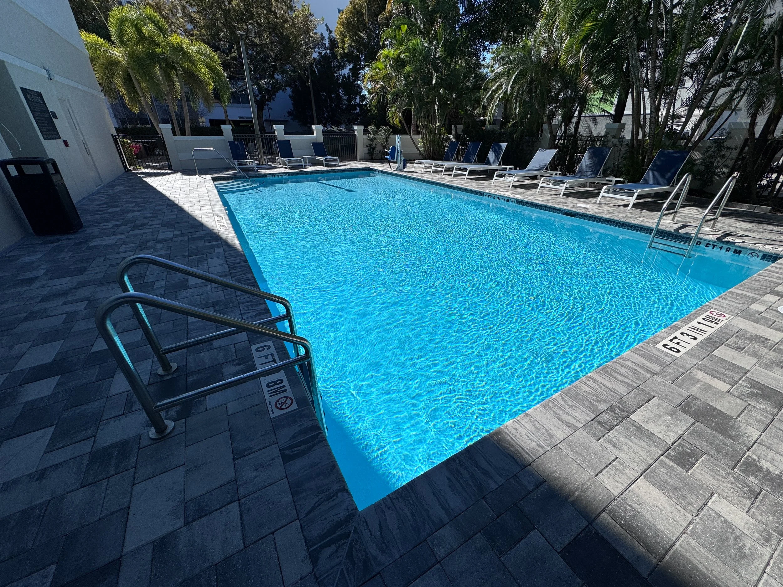 The pool has been updated with new chairs and new pavers around the perimeter. A cold snap had just occurred in Florida, so the pool was not as busy as usual. Be sure to have a physical key card to get back into the hotel. The electronic key in the Hyatt App will not work on this door.