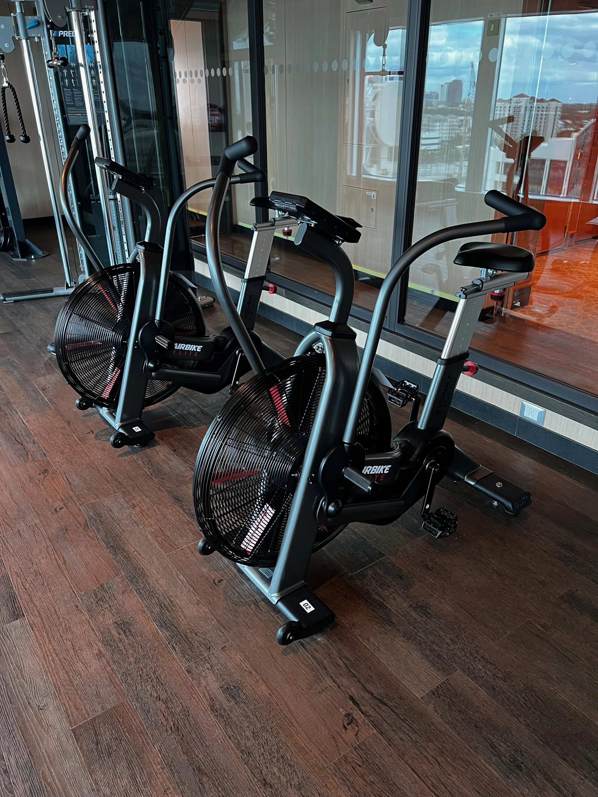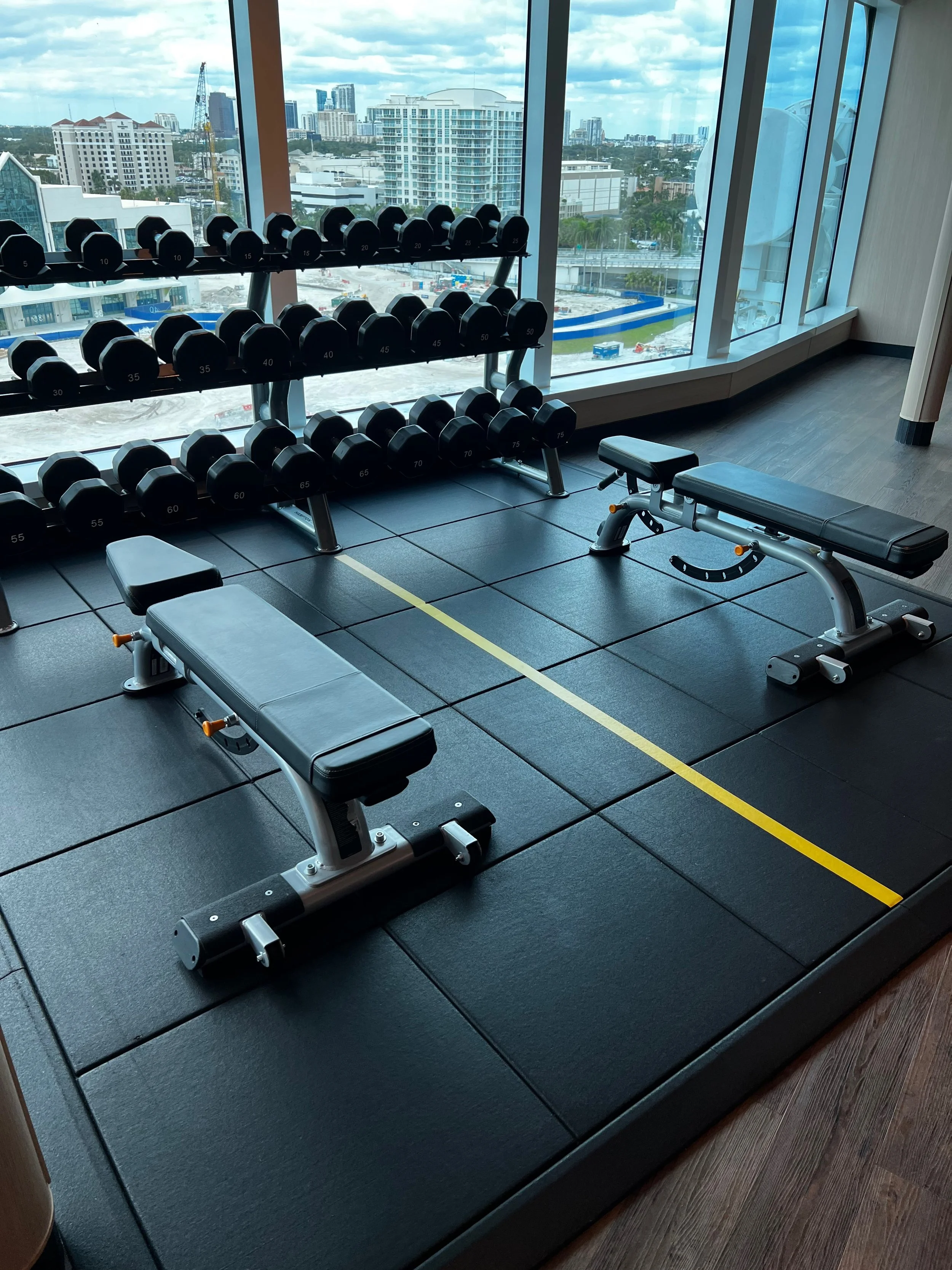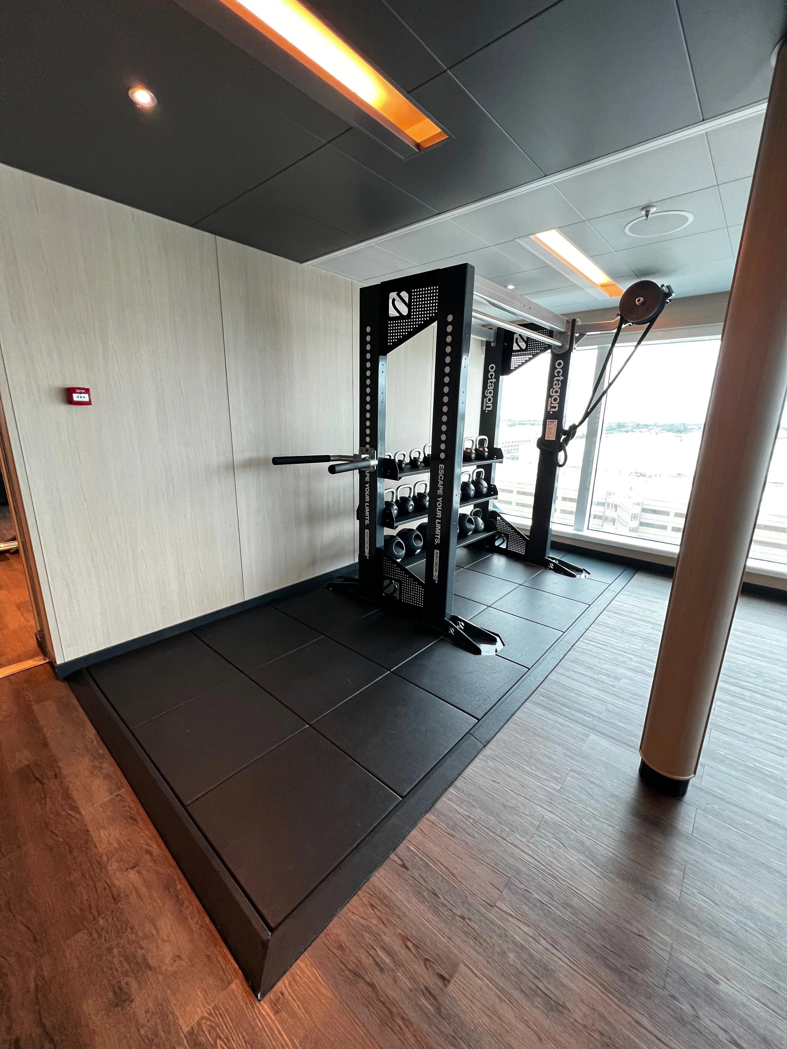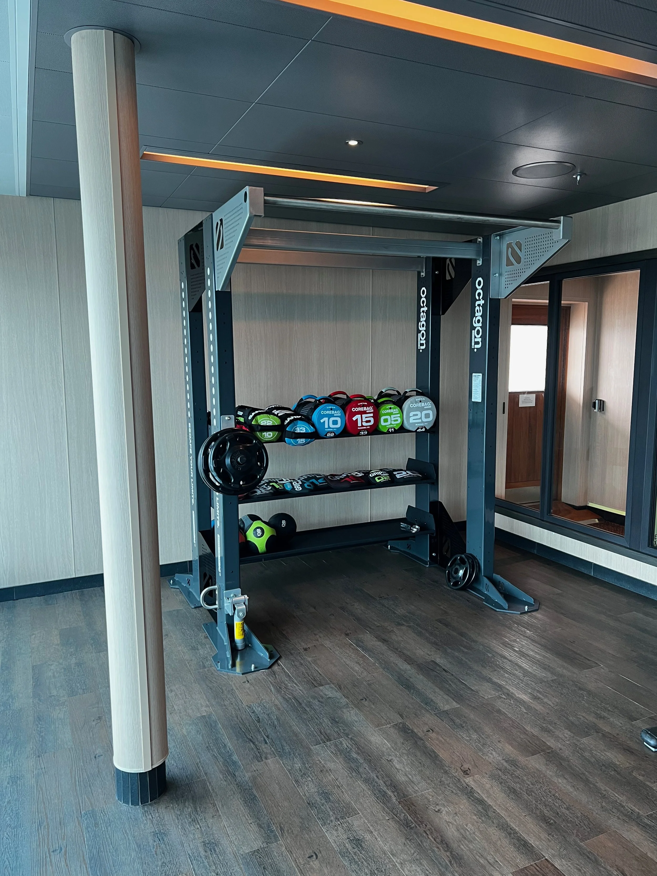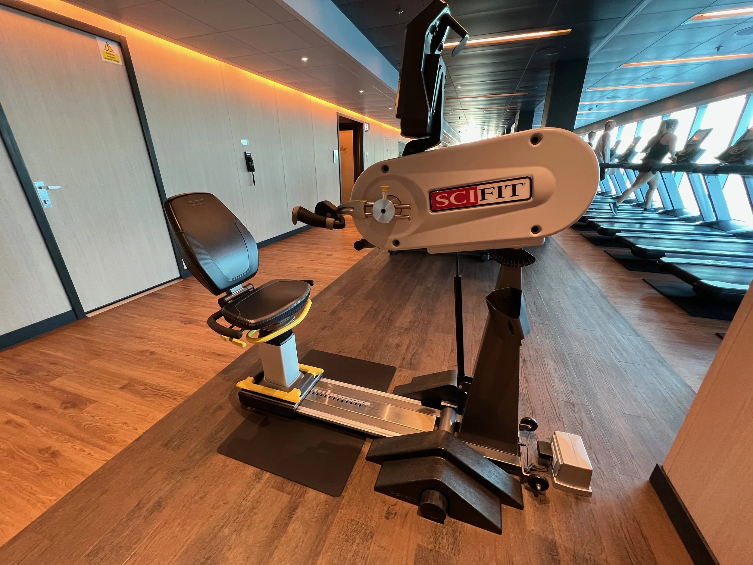 On Sky Princess the Fitness Center is located on Deck 17 aft starboard side, right next to the smoking area (ugg). The placement follows the trend in newer ships of placing the Fitness Center in an out of the way area (Virgin Voyages ships being the exception to the rule, as you would expect). Traditionally you would find the Fitness Center on a high deck overlooking the bow. But this is prime real estate, so now you find that area is used for revenue generating venues such as premium lounges.