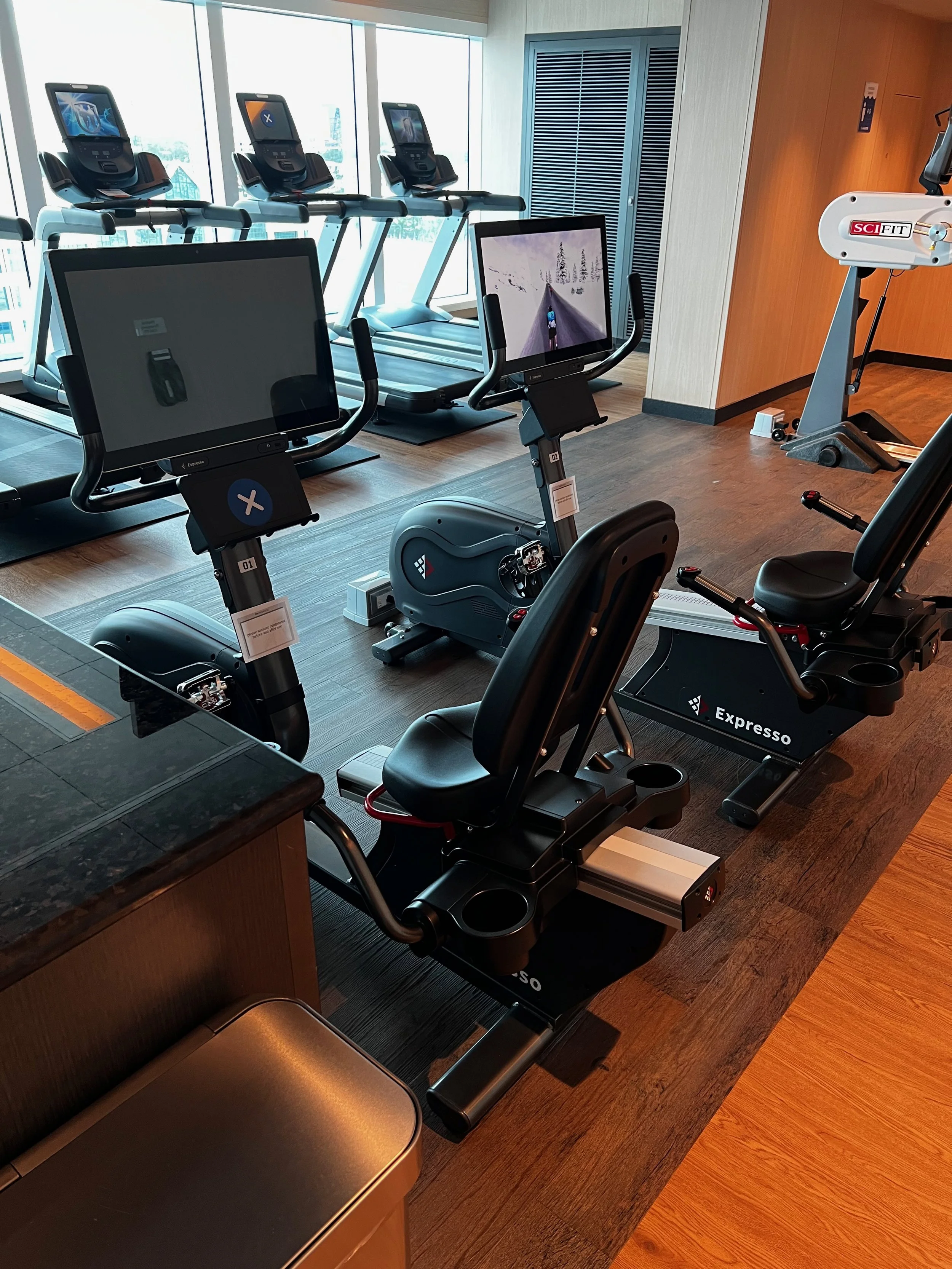 The Fitness Studio is where they conduct all the fitness classes. The classes are now branded from the company Xponential+. The selection will include yoga, barre, (mat) pilates and stretch. These are now all paid classes. If you have the Plus Package, two classes are included and for Premier, they are unlimited.